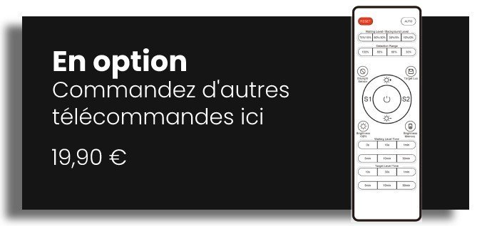 Une télécommande est livrée pour chaque 6 luminaires achetés. Vous pouvez contrôler toutes les lampes à moins de 15 mètres avec 1 télécommande. Par exemple : si vous commandez 12 unités, 2 télécommandes seront livrées. Des télécommandes supplémentaires peuvent être commandées ici.